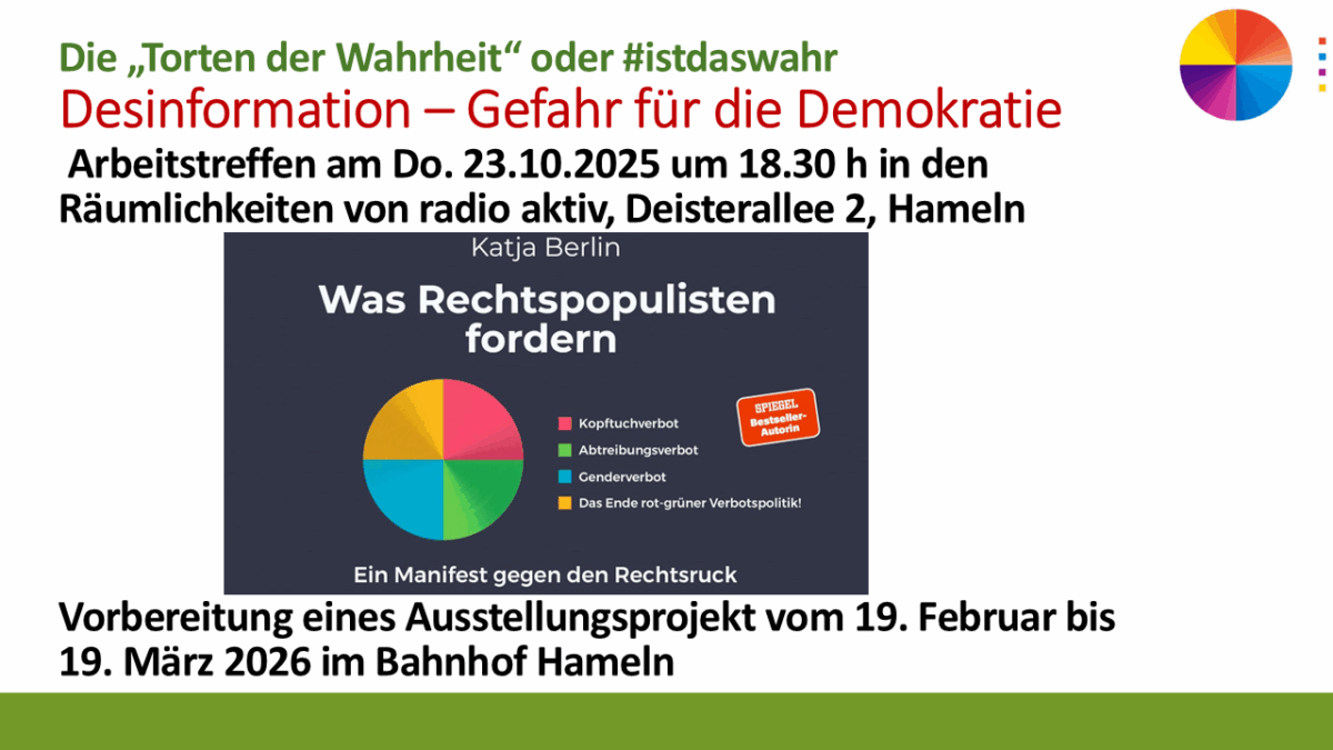 Do. 23.10.2025 um 18.30 h in den Räumlichkeiten von radio aktiv Hameln am Bürgergarten, Deisterallee 3