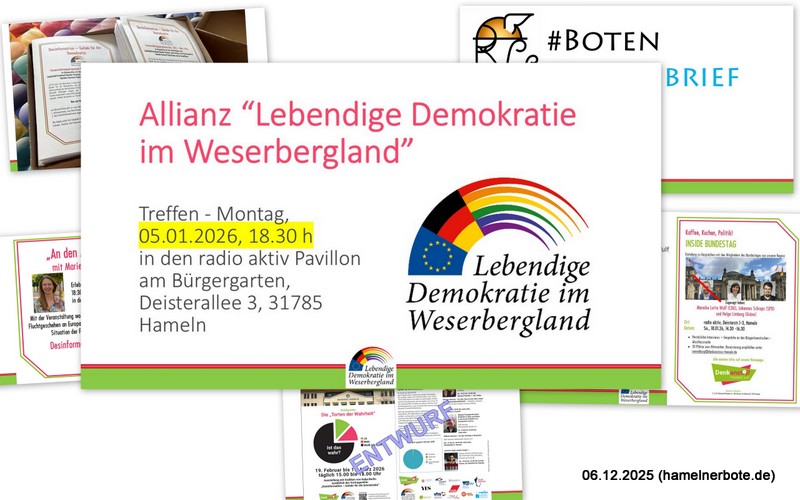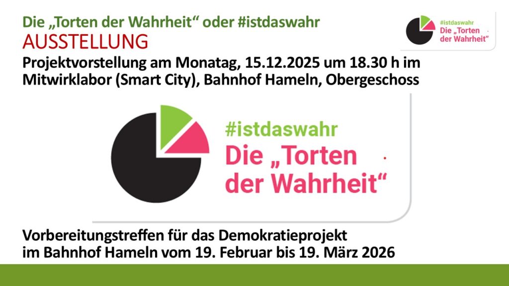 Hameln, 06.12.2025: Am Montag, 15.12.2025 um 18.30 Uhr möchten wir interessierte Menschen, Lehrerinnen, Lehrer und Leitungen von Jugendgruppen zu einer frühzeitigen Projektpräsentation einladen. Diese Präsentation findet im Mitwirklabor von Smart City im Obergeschoss des Bahnhofs Hameln statt. Hier erläutern wir den Projektstand und Hintergründe zu den Ausstellungsführungen für Schulklassen und Gruppen.