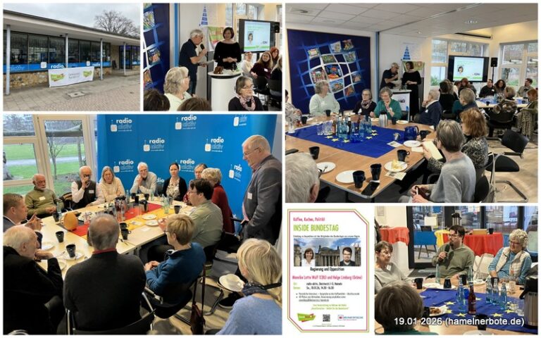 Hameln, 20.01.2026: Hier einige Bilder zum Verlauf der Veranstaltung „Inside Bundestag – Regierung und Opossition“ mit den beiden MdB Mareike Lotte Wulf (CDU) und Helge Limburg (Grüne). Eine kurze Bewertung: Zwei Stunden dauerte das „Kaffee- und Kuchen – Gespräch“ am Sonntag. Eine Stunde davon waren die Tischgespräche. Jeweils um die 15 Personen hatten 15 Minuten … Danke zum Verlauf: „Inside Bundestag“ am 19.01.2026 weiterlesen